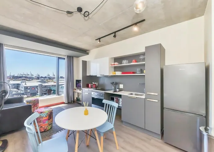 Offering an indoor pool, 605 Wex1 Designer Studio With Pool And Onsite Parking Apartment Cape Town is located a 6-minute walk from Cavendish Square Mall. This apartment is situated 0.6 km from Woodstock train station and only a few minutes from Lawley 1 bus station.